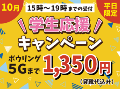 10/1(水)から期間限定で『学生応援キャンペーン』が始まります!学生さんなら誰でもOK! 平日限定、15:00