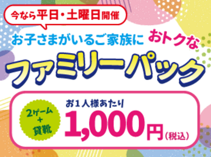 今なら毎週土曜日、さらに平日も開催中!! 中学生までのお子さまと一緒にボウリングされる方にお得なファミリーパッ