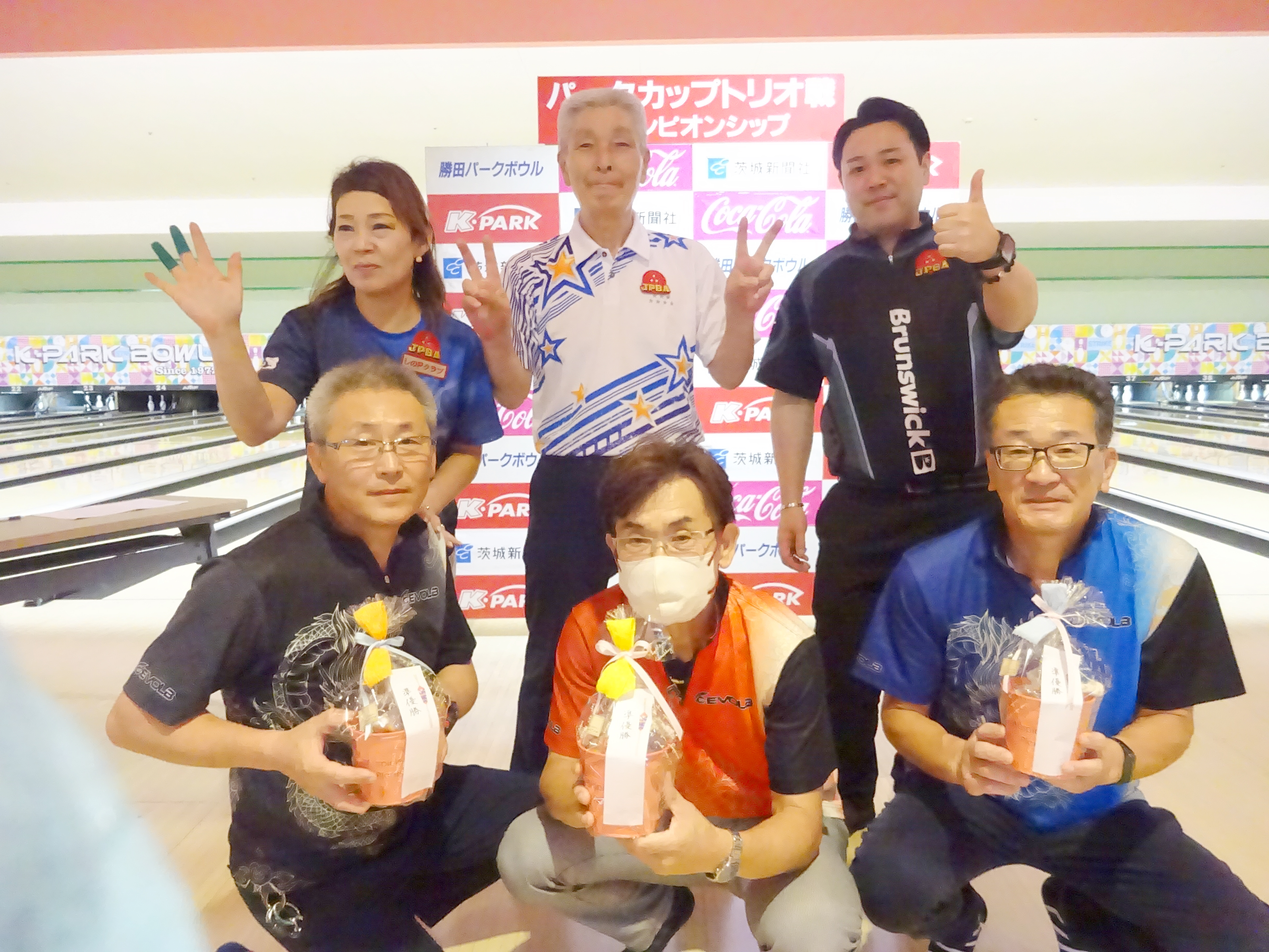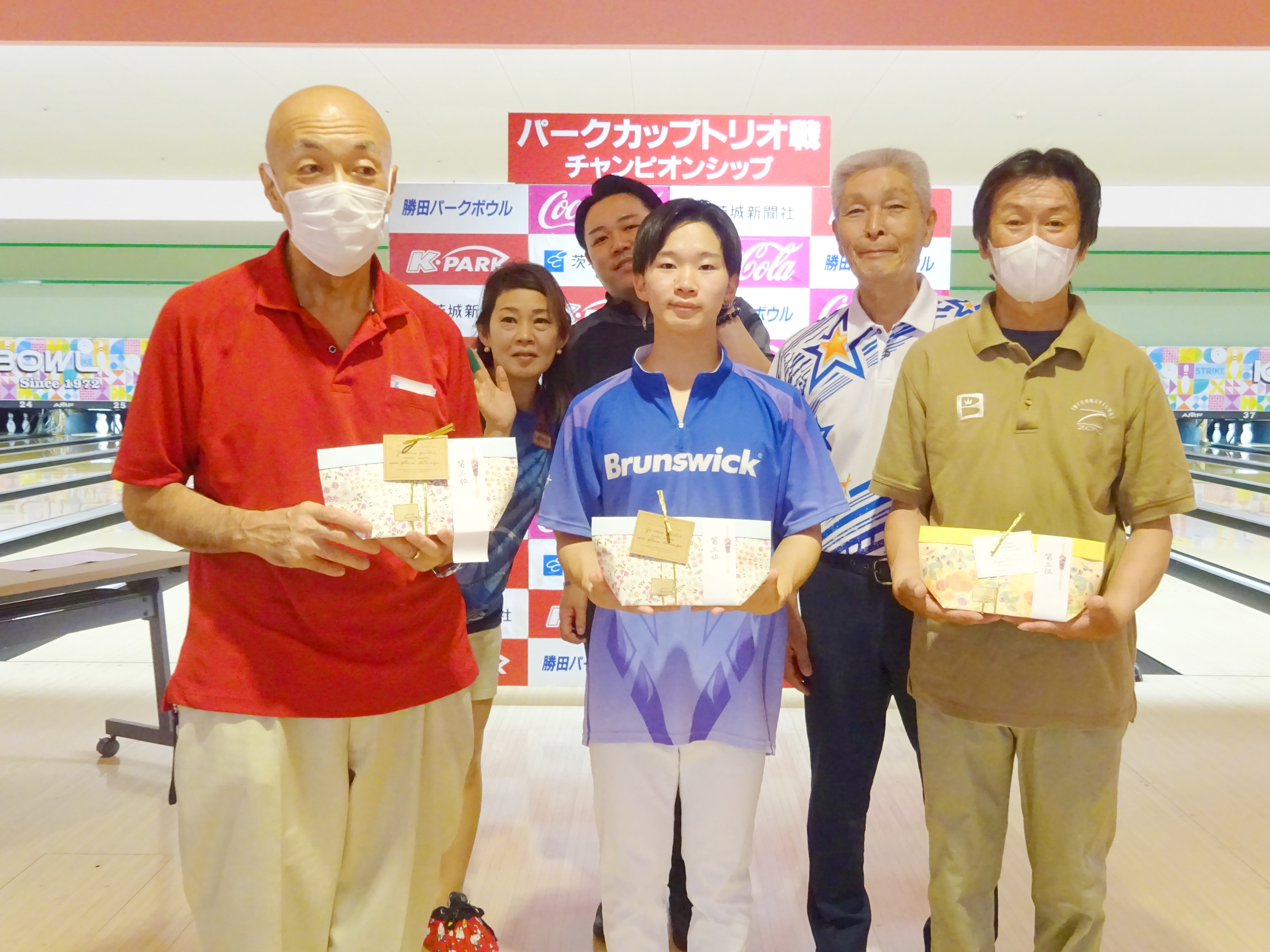 優勝は「phiten愛好会」チーム 高橋望選手、栗田優選手、森江航大選手。1956